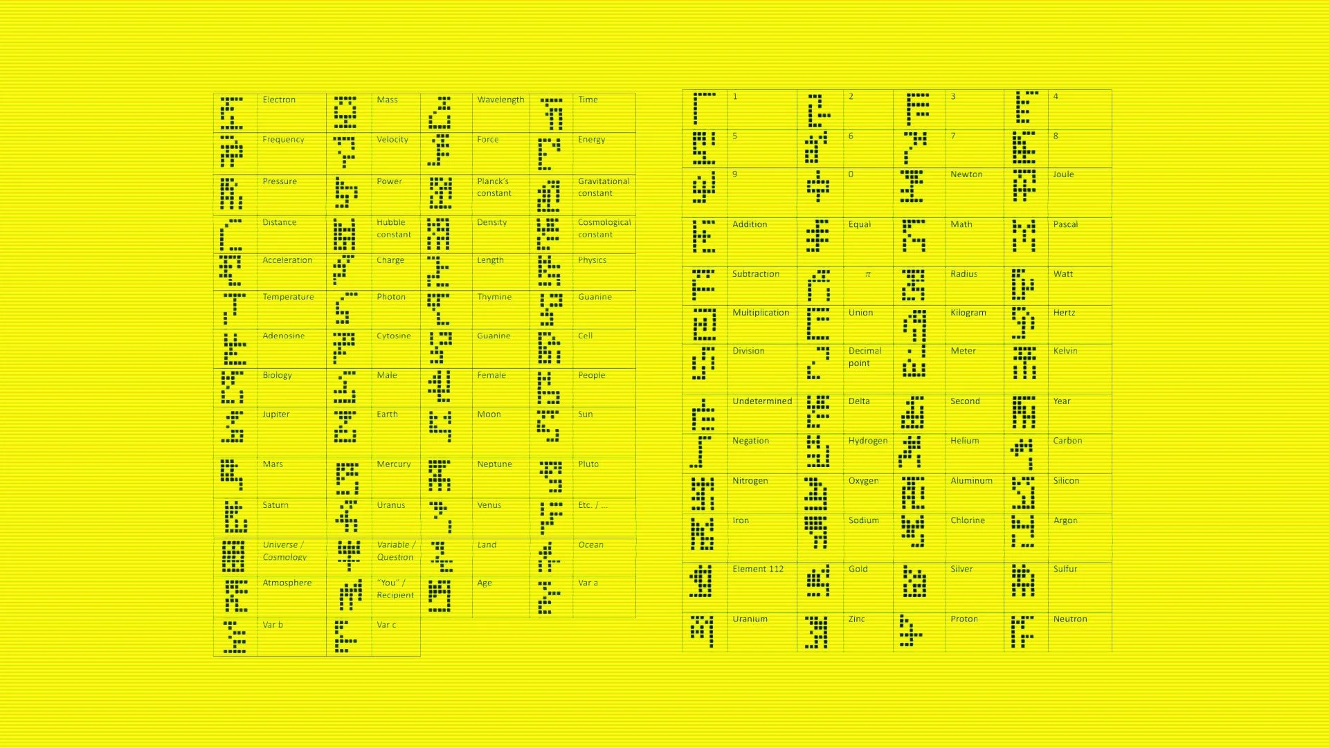 So we created billboards using lincos, a language designed to be understood by any possible intelligent extraterrestrial life form. Combining this mathematical language with a bit of binary code, we were able to create the first ever advertisements to aliens. Watch the doc here.